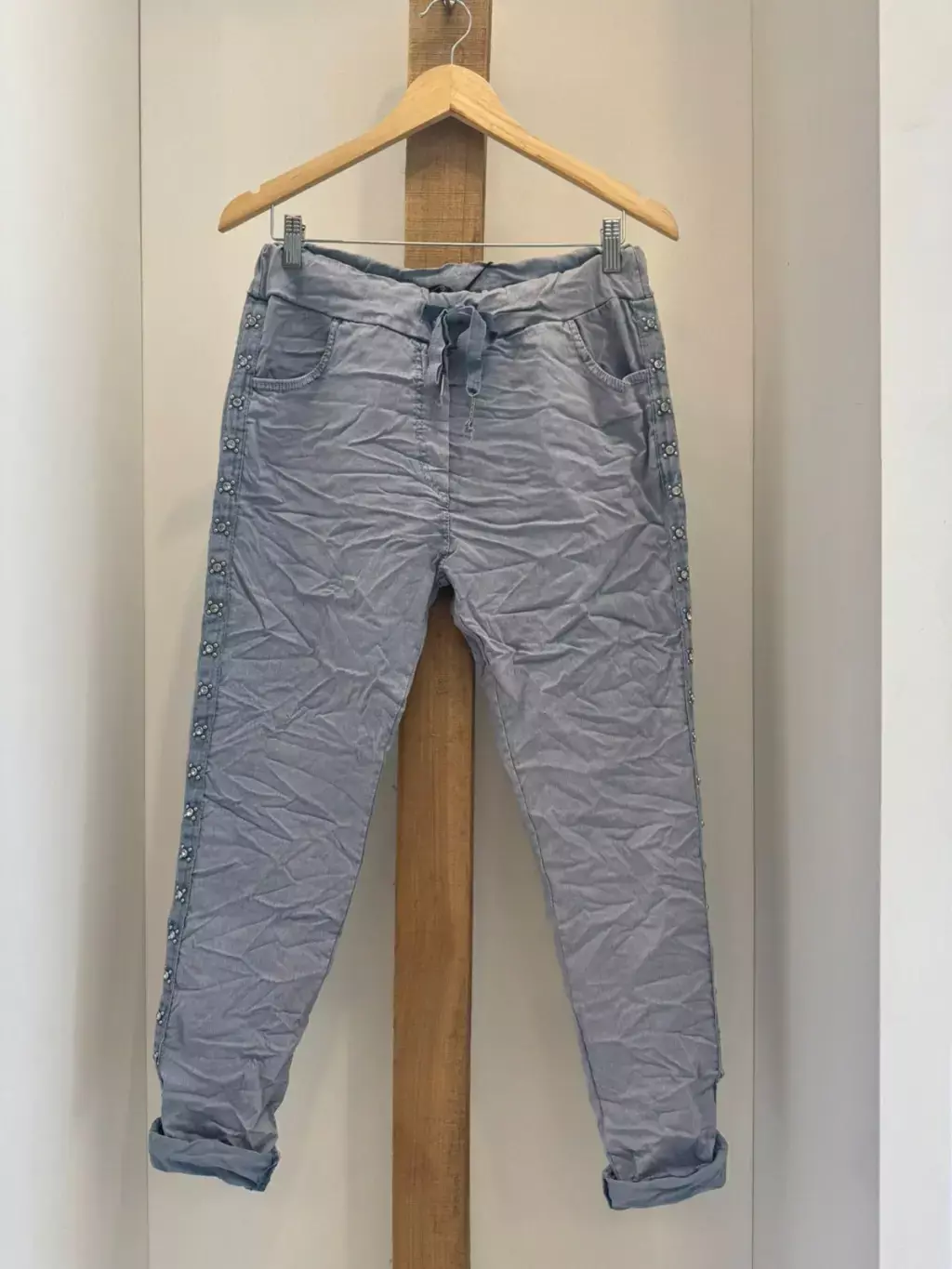 tiene cintura con elastico tiene 80 cm sin estirar y 110 cm estirada